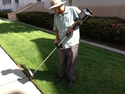 We use only CARB (emission standards) approved gas powered landscaping machines. We are proud to have a patent pending on a dust suppressing attachment for leaf blowers (see video). This device dramatically reduces the particulates generally raised into the air by the operation of traditional leaf blowers.